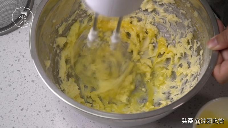 2.鸡蛋液分2次加入黄油,每次都要搅打至完全融合再加入;