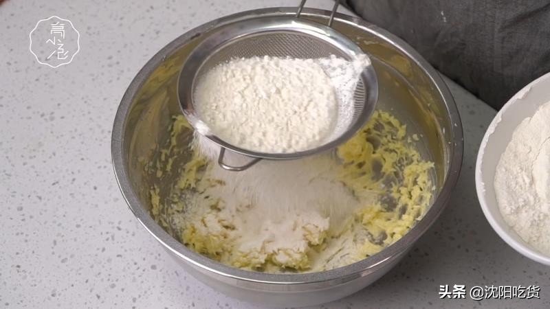 3.筛入低筋面粉和玉米淀粉,用刮刀略微翻拌,然后用手揉成细腻的面团;